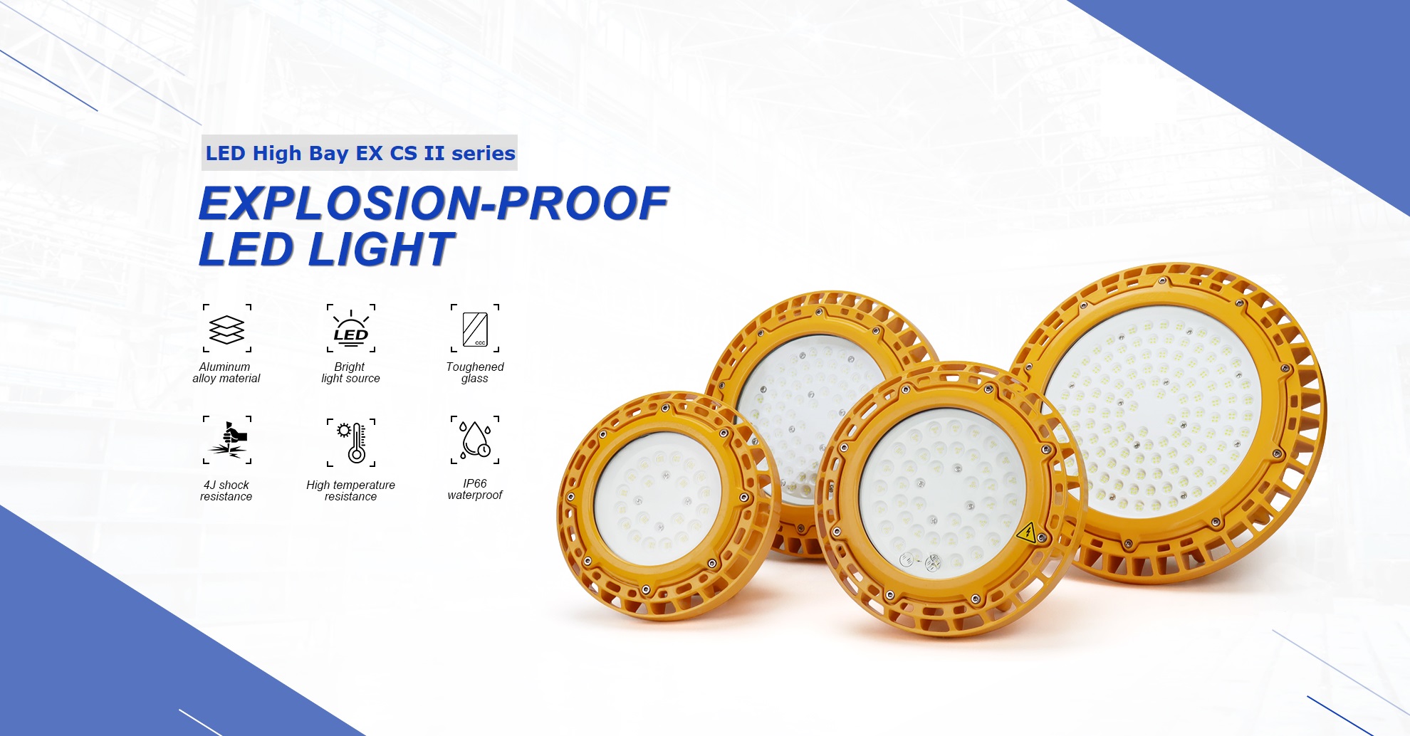 LED svítidlo typu High Bay ideální do výbušného prostředí. Vodotěsné, prachotěsné a odolné vůči korozi. LED nevýbušné průmyslové svítidlo se díky svým vlastnostem a možnostem uchycení nejčastěji používá jako High Bay. Svůj potenciál zvýšené odolnosti využije nejlépe v agresivním prostředí, kde se mohou vyskytovat také různé plyny, které by dokázaly poškodit i některé prachotěsné či vodotěsné modely průmyslových LED svítidel. Svítidlo nabízí opravdu vysoký světelný výkon, a to až 150 lumenů na jeden spotřebovaný watt elektrické energie.